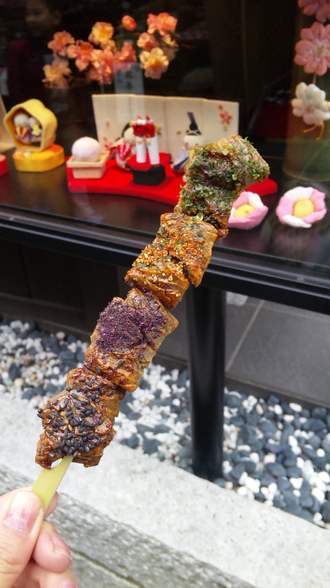 × [PR]上記の広告は3ヶ月以上新規記事投稿のないブログに表示されています。新しい記事を書く事で広告が消えます。 観光もそこそこに、食に走る私たち ![]() こちらは銀閣寺近くで見つけた【ぬれおかき】。 お昼は祇園で【生湯葉御前】。 2年前にも来たお店でした ![]() それから錦市場に移動。目移りしちゃう ![]() こちらはおばあちゃんが焼いている【焼餅】。 こちらはなんと【チョコとんかつ】。 中はとろとろのチョコレート ![]() 最後に祇園に戻って、 冷えたら身体を【抹茶】で温めました ![]() PR