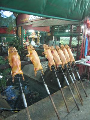 ![]() ![]() 早速みんなで歓迎会! “豚の丸焼き”という言葉は、 知っていたけれども。。 ホンモノは初めて見ました。 丸々焼かれております ![]() まずはパリパリの皮を、 甘いソースにつけていただきます ![]() それからお皿はいったん下げられ、 唐揚げになって再登場 ![]() タイの牛はガリガリに痩せているので、 お肉なら豚か鶏がおすすめです ![]() 食べ物のあるところに私が通りかかると、 ローカルスタッフたちは、 「アオマイ?(欲しい?)」 と必ず聞いてくる。 何で私が食べるの大好きなこと知ってるんだろう ![]() これはヨーグルトドリンクだと思ってもらったら、 (苦手な)ただの牛乳でした ![]() そんなこと言ってるから身長伸びないんだよ、 という突っ込みは禁止です ![]()
