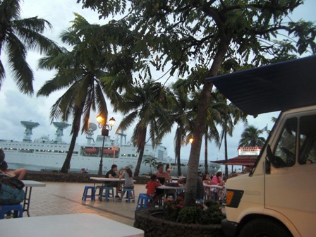 × [PR]上記の広告は3ヶ月以上新規記事投稿のないブログに表示されています。新しい記事を書く事で広告が消えます。 夕方からパペーテ港のルロット(屋台)へ ![]() ![]() トラックを改造した屋台が7,8台止まっていて、 シーフードや中華、デザートを提供しています ![]() ちなみにアルコールは禁止! 港には豪華客船が停まってました ![]() 上海からのようです。 久々にアジアンフードが食べたくて、 中華をチョイスしました ![]() チンゲン菜とエビイカの中華炒め。 麺も頼んだのですが、 なぜか一緒にフランスパンも出てきました ![]() デザートは、別のルロットで、 アイスを買ってもらいました ![]() PR