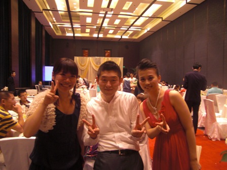 夕方までひと眠り ![]() ![]() …のつもりがぎりぎりまで寝ちゃった ![]() あわててタクシーを拾って式場のホテルに向かいました ![]() ![]() 入口にはこんなラブラブな垂れ幕が (笑)何かと手持ち無沙汰な披露宴開始までの時間ですが、 前の会社の先輩やメールでしかやりとりしたことなかった中国人スタッフと会えて、 一人の心細さなど忘れて盛り上がってしまいました ![]() いよいよ新郎新婦入場 ![]() さっきまで近くにいたのに、 やっぱりここでは主役オーラが ![]() ちなみに私のテーブルは、 中国人、日本人、イラン人、インドネシア人と入り乱れ ![]() 流暢な日本語と、気合いの英語と、片言の中国語を使いました ![]() あとはスマイルがあれば大丈夫 ![]() お色直しは二人揃ってチャイナ服 ![]() 新郎のスピーチも立派でした 会場に笑いが起こってた!!中国語だから何言ってるかわかんなかったけど(笑) 顔の大きいほうが私です ![]() tatuo, petty, 本当におめでとう ![]() 祝贺,愿你们幸福快乐,天长地久。 空港からはリニアと地下鉄を乗り継いで、 上海市内の友達(新郎)の家へ向かいました ![]() ![]() 切符買うのにも不自由してそれが楽しい。 周りは中国語ばっかりでそれも楽しい。 一人は心細いけど、 自分が挑戦した分だけ返ってくるから、 だから私は海外が好きなんだろうな ![]() 式は夕方からなのですが、 その前に新郎の家に向かったのには訳があって、 中国では式の前に新郎が新婦の実家にお迎えにあがるんだそうです ![]() それがなんと友人参加型 ![]() ![]() 爆竹を鳴らして、お互いの家でお菓子を食べたりしゃべったり、 家の中を見学したりするんだとか ![]() 無事に新郎の家に到着して、 ご家族や初めましての人たちとしゃべっていると、 新郎新婦が到着した模様 ![]() おっ、蝶ネクタイが決まってる ![]() 爆竹始まるよー!! 敷地内に響き渡る轟音でした (笑)新郎新婦のお目見えです ![]() うーん、幸せオーラがばしばし ![]() それから新居の中で、 お菓子を食べながらみんなでわいわい騒ぎました ![]() アットホームで楽しい慣習ですね ![]() |