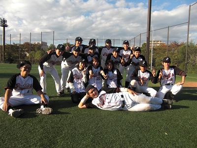 10月31日の試合でパディーズ初勝利 ![]() ![]() 私もメールを見てその場で飛び上がって喜んじゃいました ![]() 11月3日は私が参加できる最後の試合 ![]() 是非、目の前でパディーズの勝つところが見たい。 でも、みんなが楽しく野球してるところが見られれば、 私もまた次に進むエネルギーを分けてもらえる気がする ![]() そしていよいよ11月3日。 東京野球連盟主催の1day大会@城北交通公園 ![]() 見ての通り快晴に恵まれました ![]() 一試合目はどう見ても格上の相手。 一回、二回、三回と一点ずつ加算されていく。 一方パディーズは凡退が続く。 このままじりじりと差を広げられていくのか。。 ところが三回裏。 ついにヒットが出て、四点獲得&逆転! なんとこのまま逃げ切り、 パディーズは2勝目を挙げました!! ![]() 二試合目は四回が終わった時点で四対一でリード。 このまま逃げ切りかと思いきや、 五回で同点に、六回で逆転を許し、 再逆転とはなりませんでした。 今回のマネが選ぶMVPはnakagiriさんです ![]() 一試合目の初ヒットで一気に流れを掴みました。 その他にも、声出し、選手へのアドバイス、チームをまとめ上げる力、 さすが我らがキャプテンです ![]() 個人的には、 私をパディーズに誘ってくれて本当にありがとう ![]() これからもチームの大黒柱として、 みんなを引っ張って行ってください ![]() ![]() |