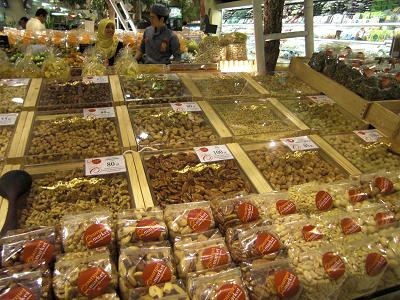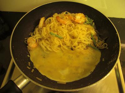 本日のメニューはパッタイ(タイ風焼きそば)です。 まずはお買い物から ![]() まずは麺を選びましょう。 パッタイ用のセンレック(平細麺)は、、 あったあった(右上) ![]() パッタイには砕いたピーナッツの食感が必要。 ナッツ売り場に移動したものの、 種類が多すぎてどれがいいのかわからない ![]() ![]() 「ヤークタムパッタイ(パッタイが作りたいんだけど…)」 と売り場のお兄さんに助けてもらいました。 ナッツは量り売りです ![]() 食べる直前に絞るライムも不可欠! その他諸々のお買い物も済ませ、 いざ我が家のキッチンへ ![]() 材料は、センレック(麺)、ピーナッツ、ライム、 卵、エビ、もやし、ニラの代わりの空芯菜。 調味料は今から買ってもたぶん使い切れないので、 今回は“パッタイの素”に頼っちゃいます。 ピーナッツは荒く砕いて、ライムは横半分に。 卵は溶いて、空芯菜はざく切りにします。 麺は熱湯に3~5分つけておき、 程よい柔らかさになったらざるにあげておきます。 熱したフライパンに油を引いて、 エビ、空芯菜の順に炒めます。 麺と“パッタイの素”を加え、 強火でさらに炒めます。 フライパンの半分に溶き卵を加え、 半熟になったところで麺に絡めます。 最後にピーナッツともやしを加え、 ざっくり火が通ったら出来上がり。 ライムとナンプラーをお好みでどうぞ ![]() ![]() 空芯菜を炒め始めるタイミングはもやしと一緒の方がよかったかも。。 次回は今日余った空芯菜を使った炒め物と、 トムヤムクンに挑戦する予定です ![]()