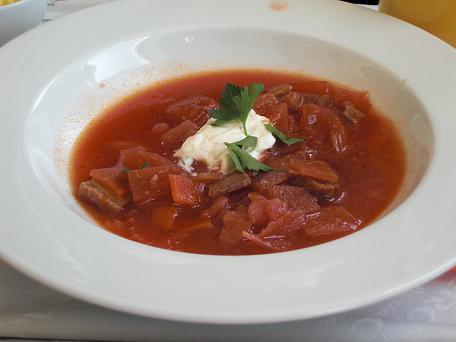 【シェレメチェヴォ空港第1ターミナル,エアポートモスクワ(貨物のハンドリング会社)】 午前中はこちらの施設の見学。 主に国内線が乗り入れてるターミナルで、 規模は小さかったです。 とあるフォワーダーの貨物を見つけ、 みんなで蹴ってダメージ貨物にしてやろうと盛り上がりました (笑)【本日のランチ~スープとビーフストロガノフ~】 第2ターミナル内のレストランで食べました ![]() ![]() スープにサワークリームが載っているのは基本。 お米はベトナム米かな?パサパサでした。。 海外行くと、自分の主食はお米だと痛感します。 【第2ターミナルとシェレメチェヴォカーゴ(貨物のハンドリング会社)】 午後はこちらの施設の見学。 国際線が乗り入れるターミナルだけあって、 規模が大きくシステマティックでした。 セキュリティーも万全。 この後、ホテルに帰ってディナーでした ![]() ![]() 【ピニャコラーダ】 こんなにクリームが… ![]() 【きのこ入りピロシキ】 モスクワに来て初のご対面。 形も中身もいろいろあるみたいです。 【キエフカツ】 チーズ入り鶏のフライ。 航空会社の人がお醤油のミニボトルを持っていたのでお借りすると、 これがとても合いました! 【ミルフィーユ】 甘すぎなくておいしい ![]() ![]() ロシア料理は軽くスパイスが効いてるけど、 割とあっさりしてて日本人の口に合うと思います