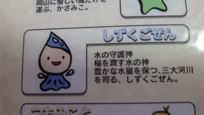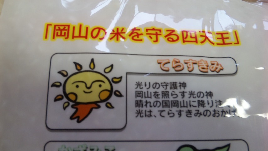 スーパーに買いに行きました ![]() ![]() タイにいるときもタイ米を炊いて食べていたけど、 なるべく食べ物は地元のものがいいなぁと思って探していると、、 気になるお米を発見 ![]() ![]() 『アケボノ』 四天王が育んだ岡山の旨い米 “四天王”とは一体…??? てらすきみ 光りの守護神 岡山を照らす光の神 晴れの国岡山に降り注ぐ 光は、てらすきみのおかげ かざみこ 風の守護神 穏やかな風を運ぶ風の神 岡山に優しい風だけを 運ぶ、かざみこ しずくごぜん 水の守護神 稲を潤す水の神 豊かな水量を保つ、三大河川 を司る、しずくごぜん つちのみこと 土の守護神 肥沃な台地を守る土の神 栄養いっぱいの土は、 つちみことのおかげ。 なんてわかりやすくてキュートな四天王たち ![]() ![]() もちろん、アケボノ5kg購入いたしました ![]() PR