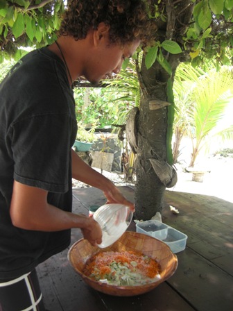 × [PR]上記の広告は3ヶ月以上新規記事投稿のないブログに表示されています。新しい記事を書く事で広告が消えます。 続きましてSteveの料理教室 ![]() ![]() マグロのぶつ切りに塩をまぶして混ぜます。 ライムを絞って加えます。 野菜を加えます。 ここでココナツミルクを加えます。 素敵な前菜の出来上がり ![]() ![]() PR
